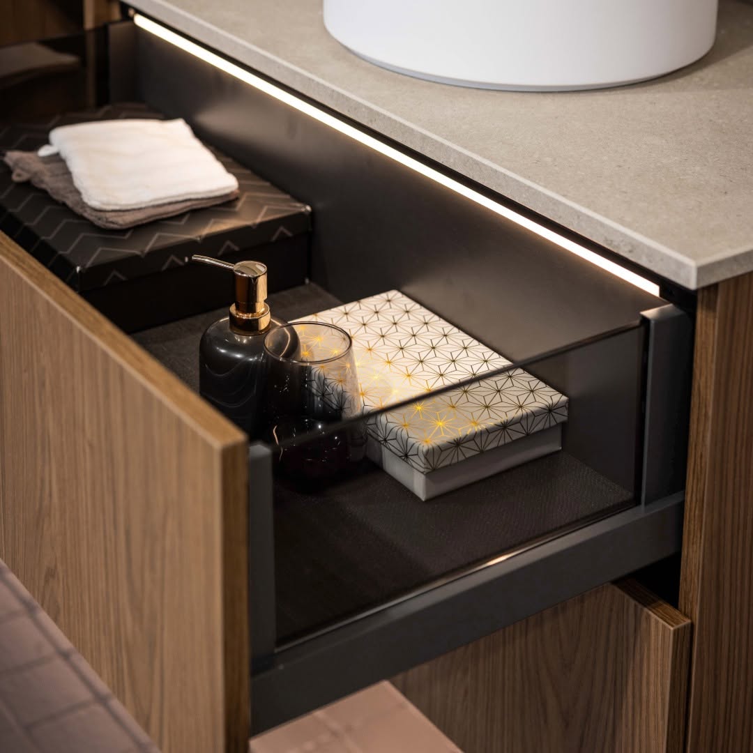Discover innovative solutions with GRASS. 🖤 Today, we present a pharmacy cabinet with Vionaro V8 drawers, providing extra storage space and comfort.