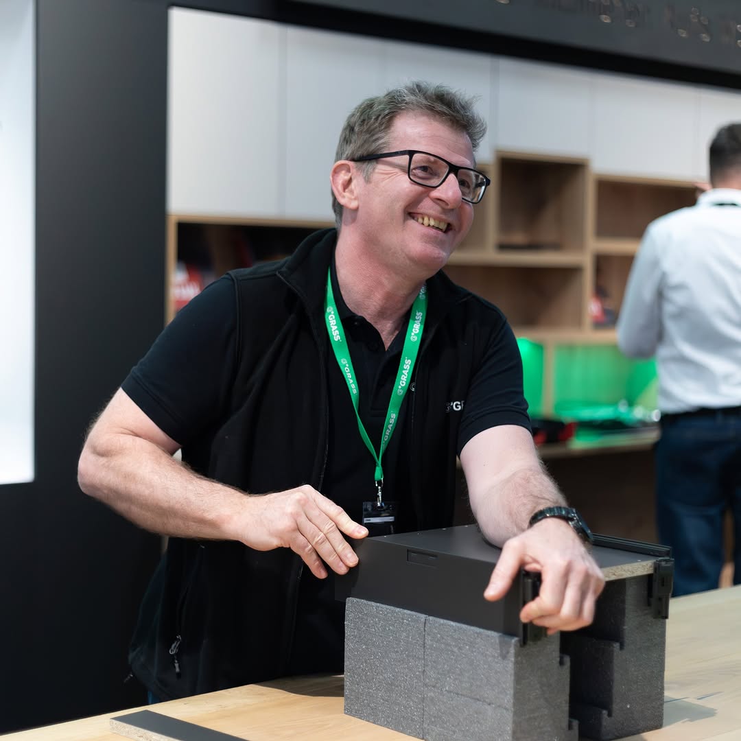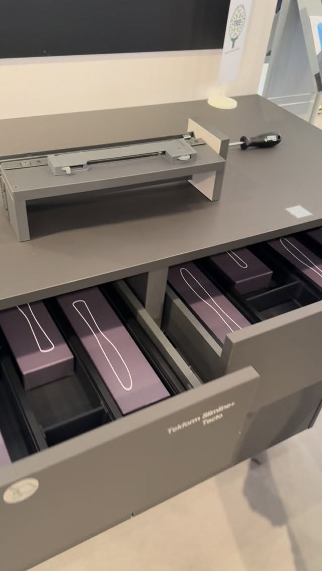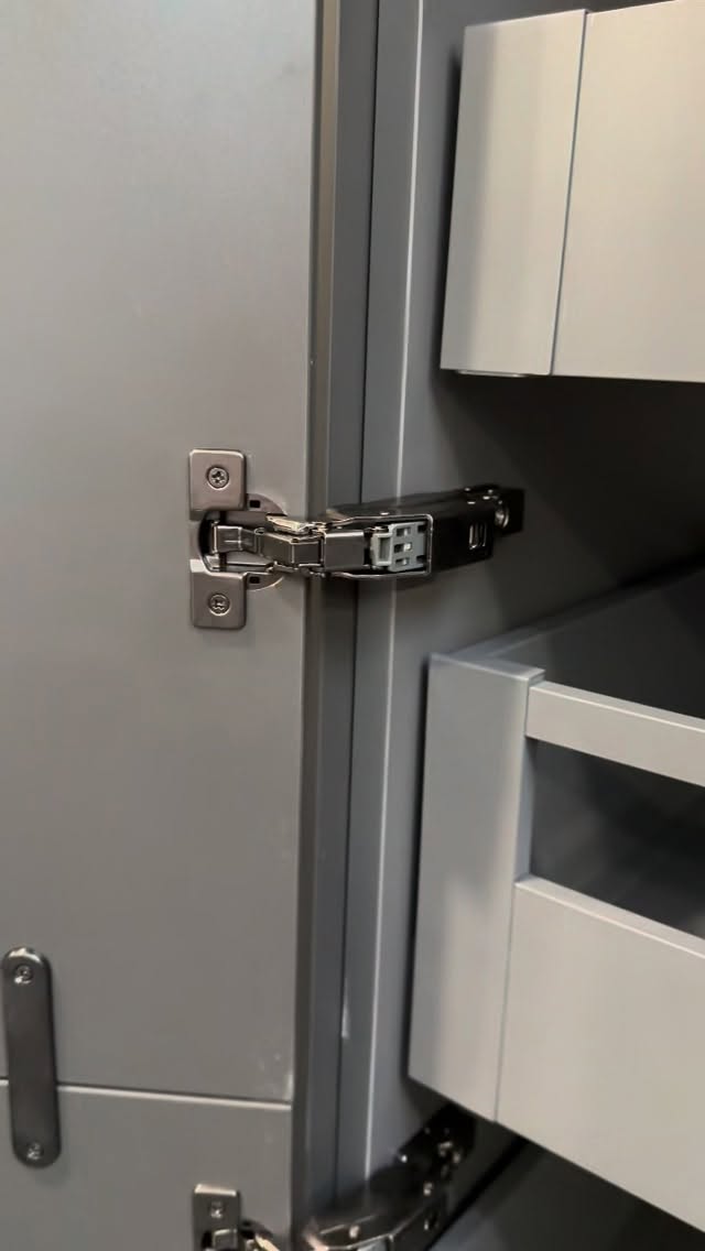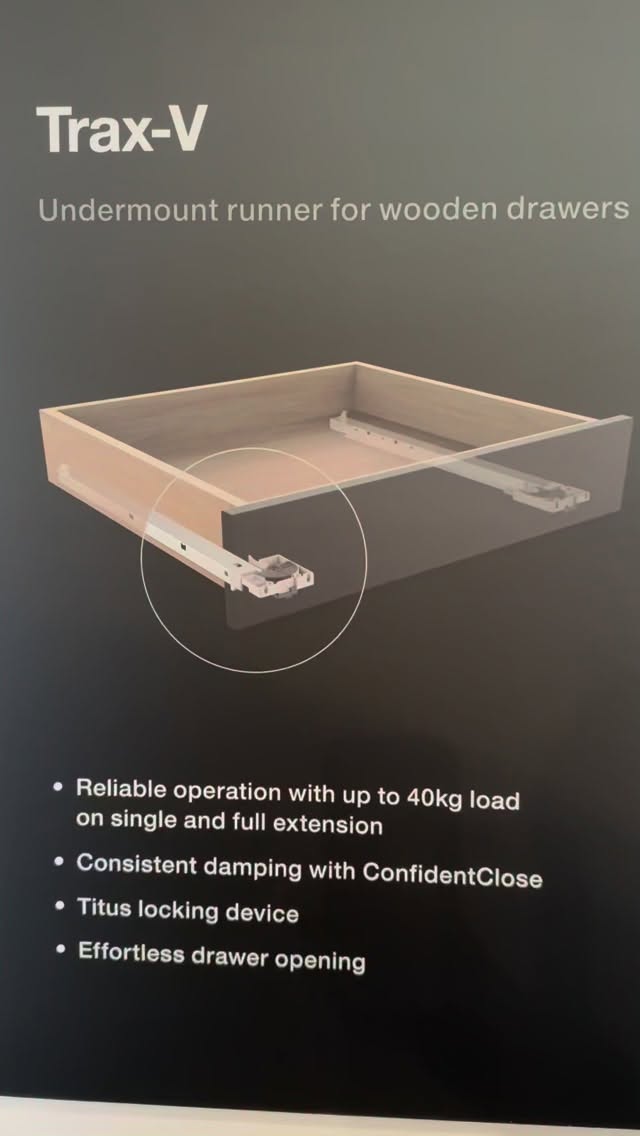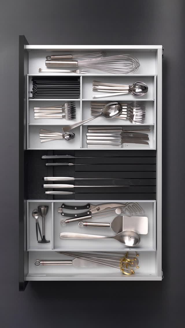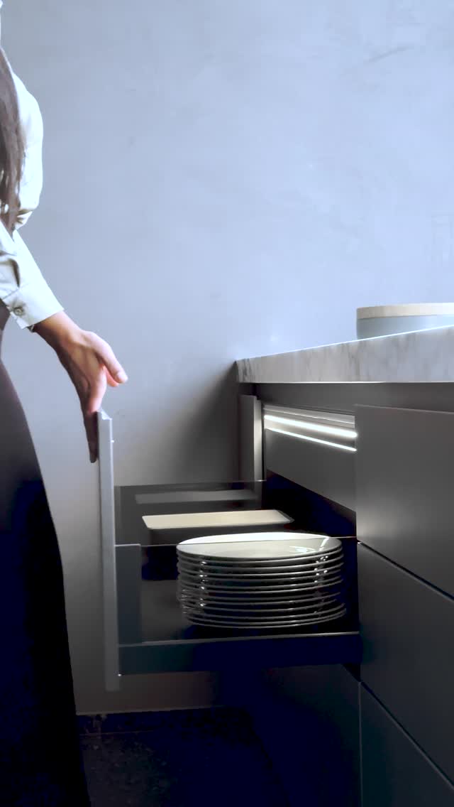 Are you interested in special applications with GRASS? ⚙️💡 Today we show you a tall cabinet using Tiomos hinge for the cabinet door and Vionaro V8 drawers for the storage inside of the furniture. Do you like this system?