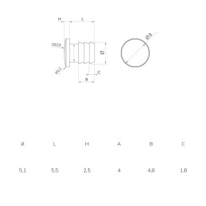 • Pehmendus osa Ø9, kõrgus 2,5mm, ava Ø5x5,5