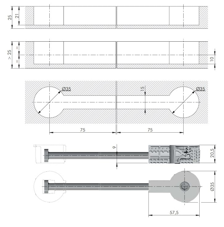 Töötasapinna ühendustõmmits IF-Quick 35m L150mm, TK
